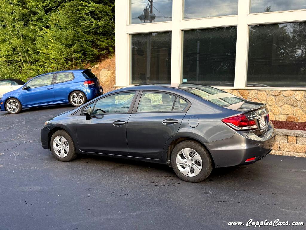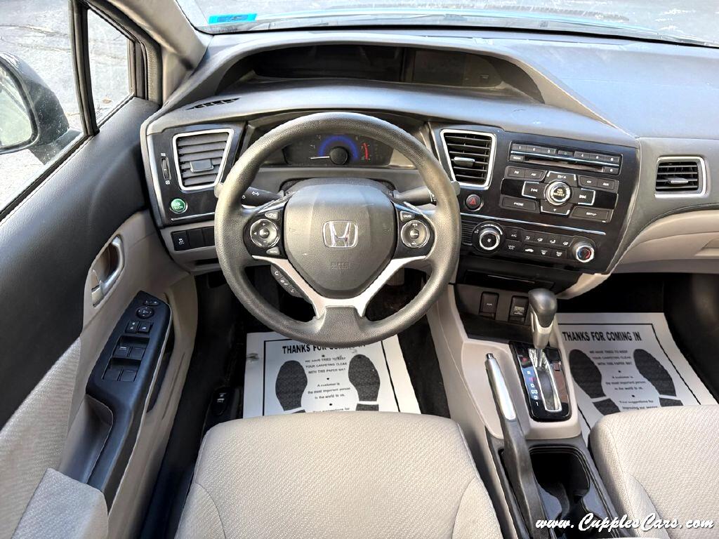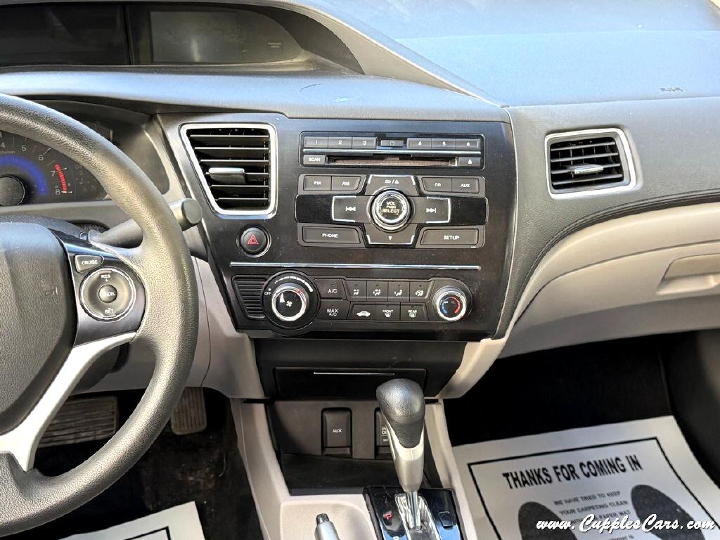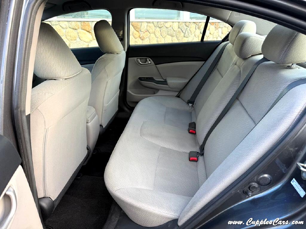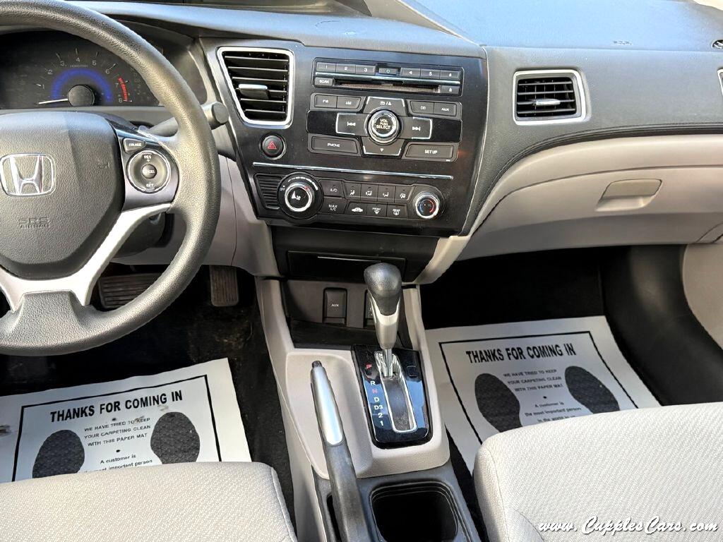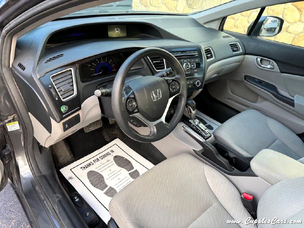 Very clean!! 86K miles on this 2013 4-Cylinder Civic LX Sedan! One of the most reliable cars on the market! Grey exterior with grey cloth interior. 39MPG 4-Cylinder, 5-Speed AUTOMATIC Transmission, Air Conditioning, Tilt Wheel, Power windows, Power Locks, AM/FM/CD Player, Cruise Control, Power Mirrors. Fully inspected, serviced, and sold with a 3 Month 3,000 Mile Powertrain Warranty! One of the most reliable, dependable, long-lasting cars on the market! ONCE OWNER SINCE NEW, CLEAN CARFAX with just one ''minor damage'' report back in 2013, YOU'RE MILE$ AHEAD!!